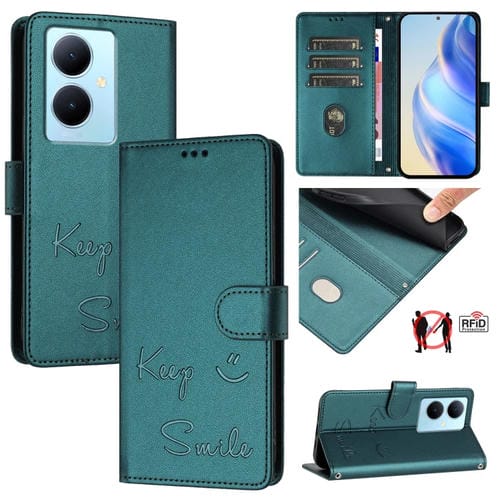 Funda de Cuero Rfid con Relieve de Sonrisa Global para Vivo Y78+ 5G (Verde Pavo Real)