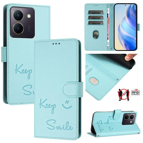 Funda de Cuero Rfid con Relieve de Sonrisa India para Vivo Y36 4G (Verde Menta)