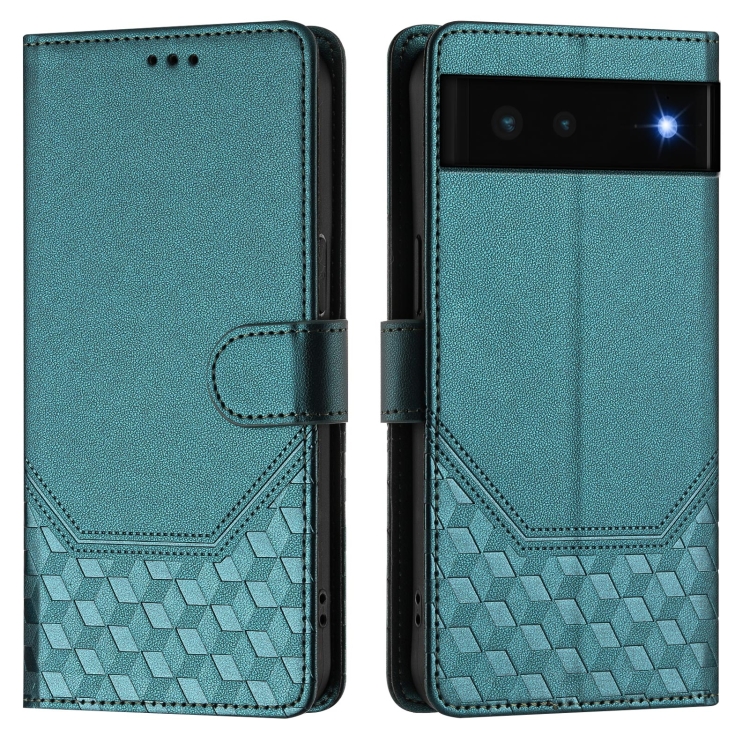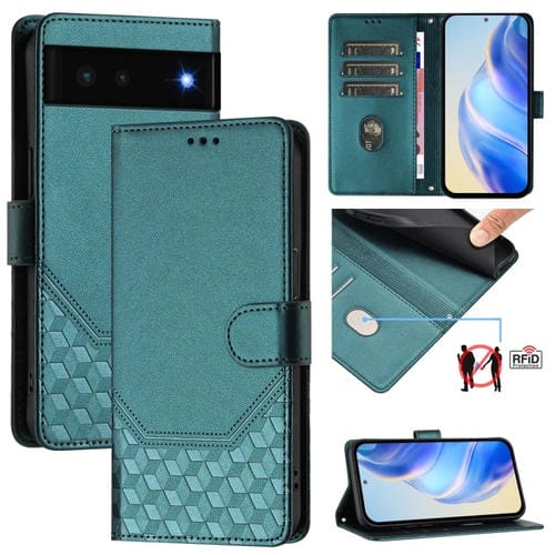 Funda de Cuero Rfid con Relieve en Panal para Google Pixel 6 (Verde Pavo Real)