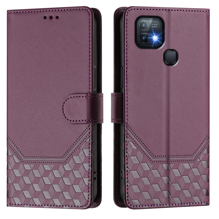 Funda de Cuero Rfid con Relieve en Panal para Infinix Hot 10I (Violeta)