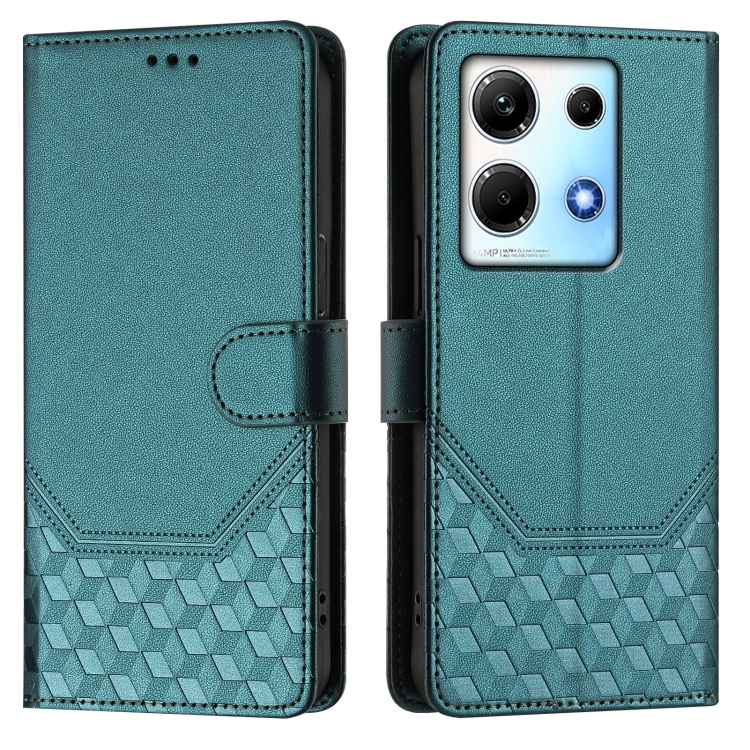 Funda de Cuero Rfid con Relieve en Panal para Infinix Note 30 5G/4G (Verde Pavo Real)