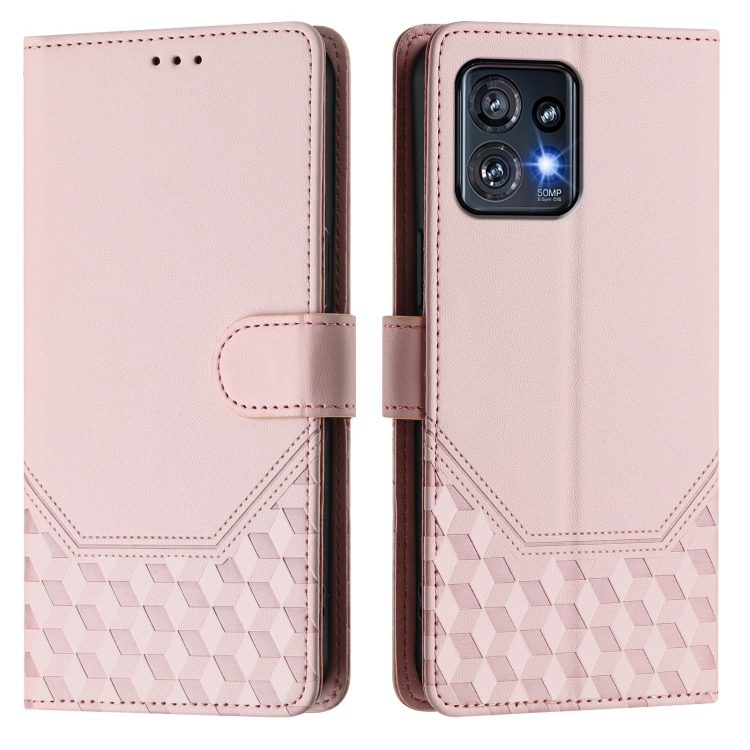 Funda de Cuero Rfid con Relieve en Panal para Motorola Edge+ 2023/40 Pro (Rosa)