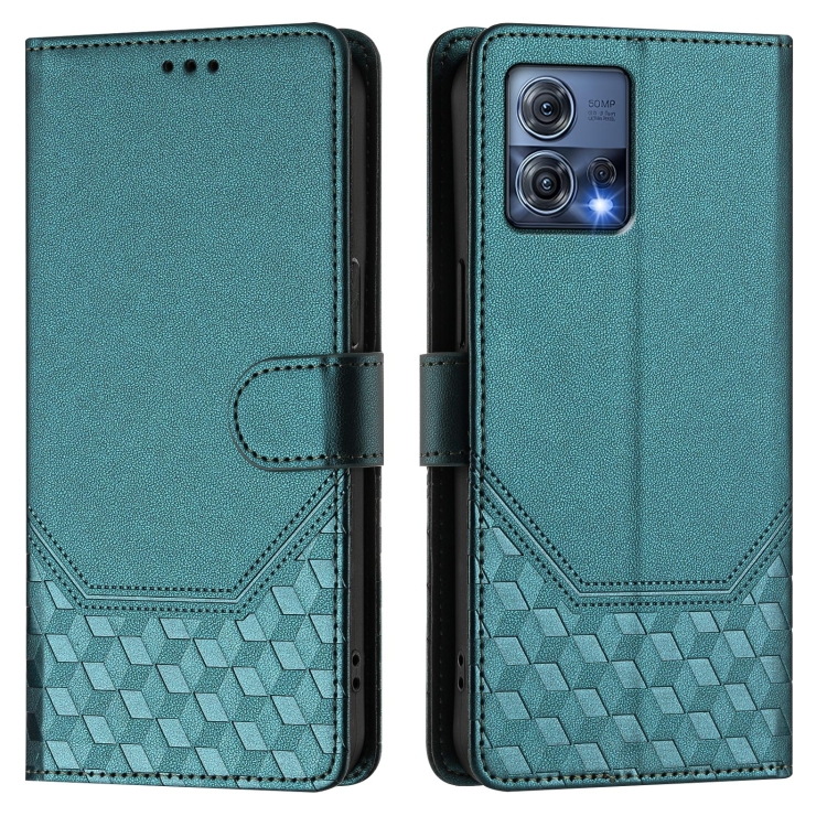 Funda de Cuero Rfid con Relieve en Panal para Motorola Edge 30 Fusion/Moto S30 Pro (Verde Pavo Real)