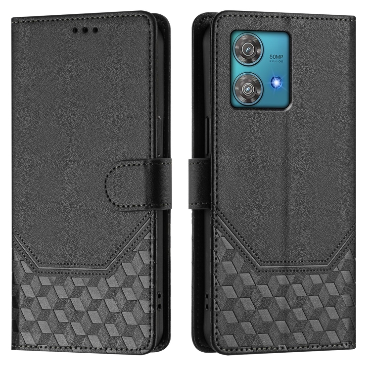 Funda de Cuero Rfid con Relieve en Panal para Motorola Edge 40 Neo 5G (Negra)