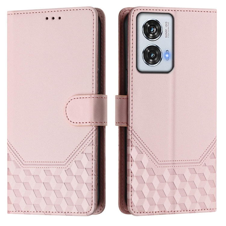 Funda de Cuero RFID con Relieve en Panal para Motorola Edge 50 Fusion (Rosa)