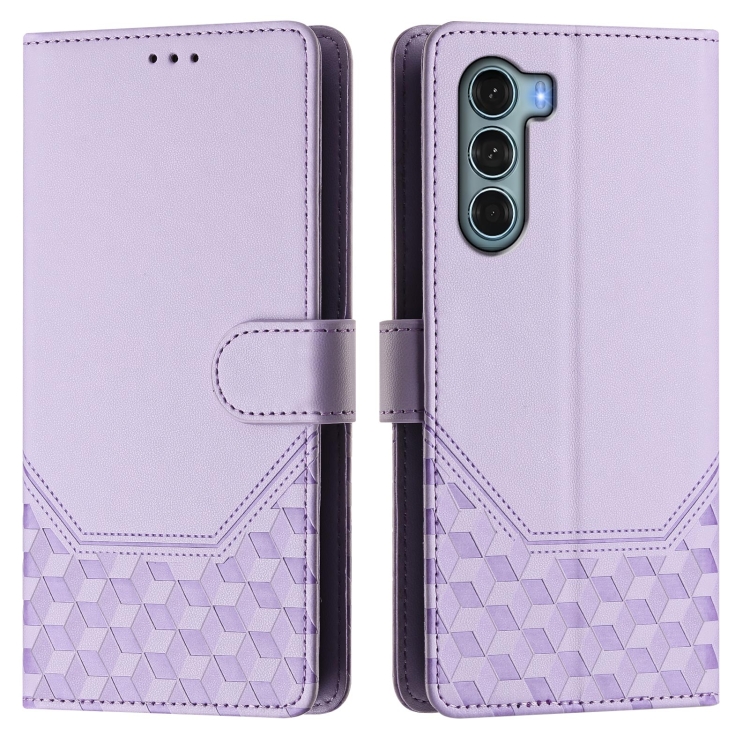 Funda de Cuero Rfid con Relieve en Panal para Motorola Edge S30 y Moto G200 5G (Morado Claro)