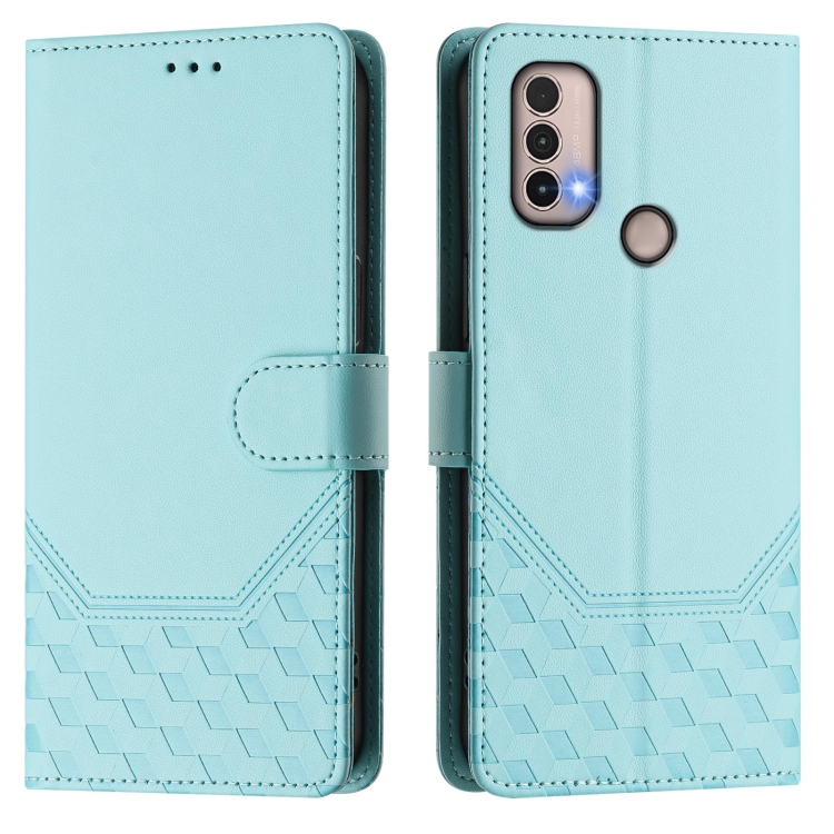 Funda de Cuero Rfid con Relieve en Panal para Motorola Moto E40/E30/E20 (Verde Menta)
