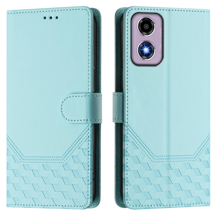 Funda de Cuero Rfid con Relieve en Panal para Motorola Moto G04 4G/G04S 4G (Verde Menta)