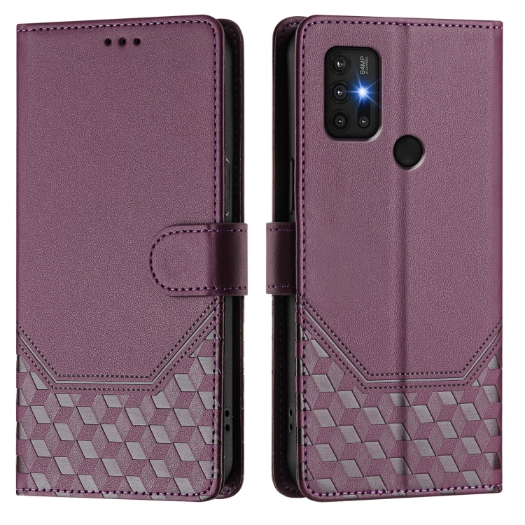 Funda de Cuero Rfid con Relieve en Panal para Motorola Moto G30/G20/G10 (Violeta)