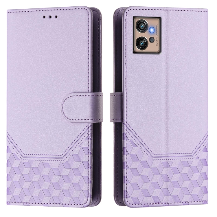 Funda de Cuero Rfid con Relieve en Panal para Motorola Moto G32 (Morado Claro)