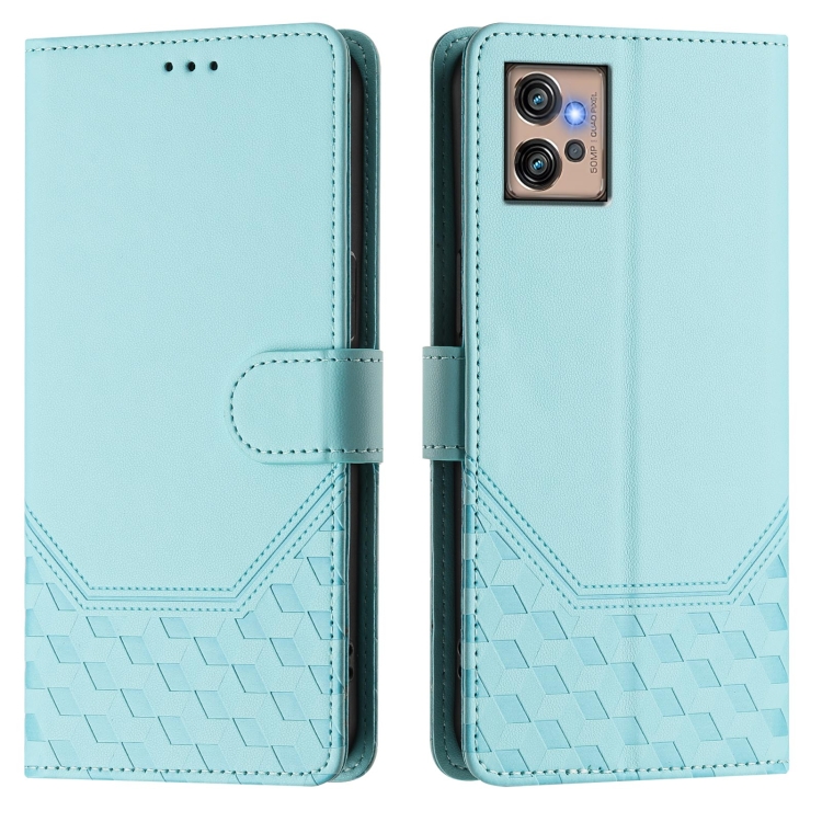 Funda de Cuero Rfid con Relieve en Panal para Motorola Moto G32 (Verde Menta)