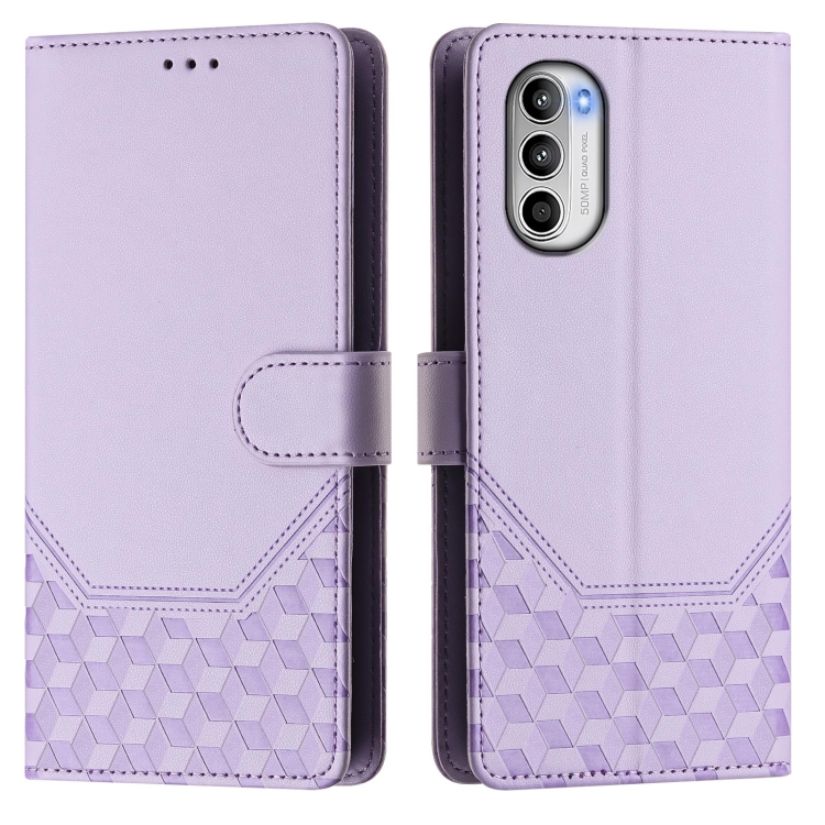 Funda de Cuero Rfid con Relieve en Panal para Motorola Moto G52 4G/G82 5G/G71S (Morado Claro)
