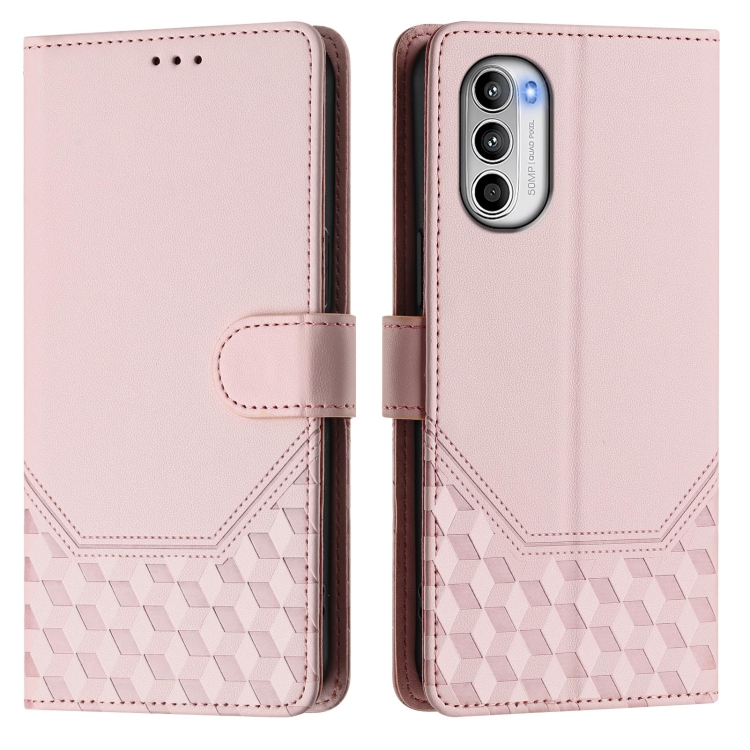 Funda de Cuero RFID con Relieve en Panal para Motorola Moto G52 4G/G82 5G/G71S (Rosa)
