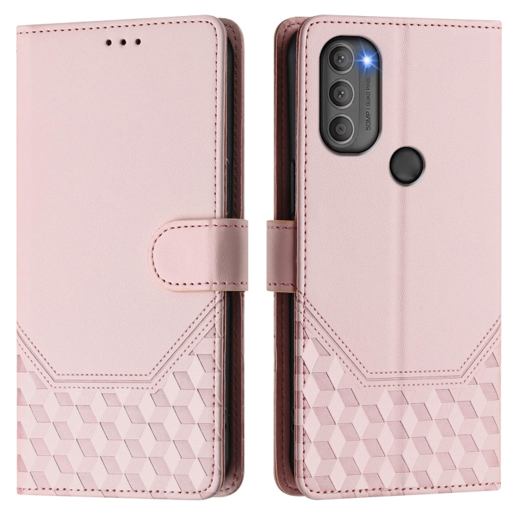 Funda de Cuero Rfid con Relieve en Panal para Motorola Moto G71 5G (Rosa)