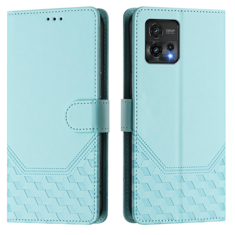 Funda de Cuero Rfid con Relieve en Panal para Motorola Moto G72 (Verde Menta)