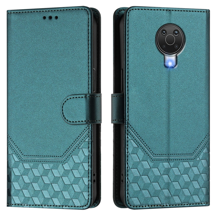 Funda de Cuero Rfid con Relieve en Panal para Nokia G20/G10 (Verde Pavo Real)