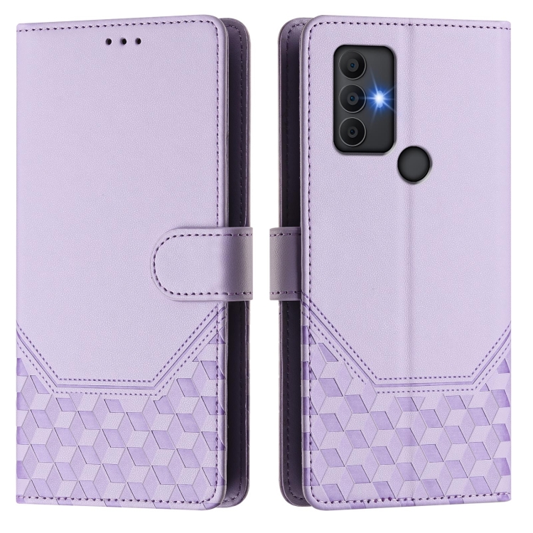 Funda de Cuero Rfid con Relieve en Panal para TCL 305/306 (Morado Claro)