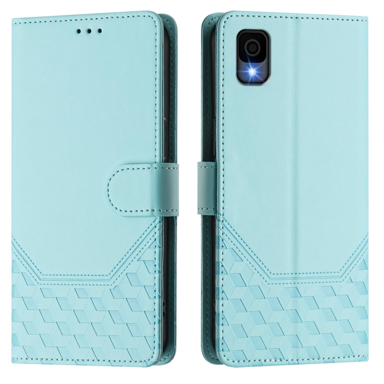 Funda de Cuero Rfid con Relieve en Panal para TCL 30Z (Verde Menta)