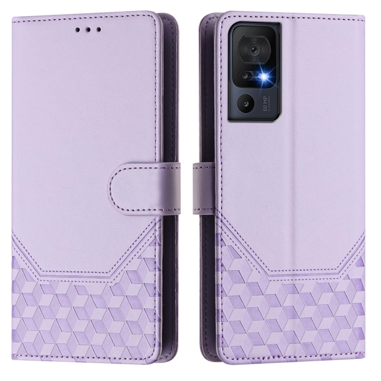 Funda de Cuero Rfid con Relieve en Panal para TCL 40 Se (Morado Claro)
