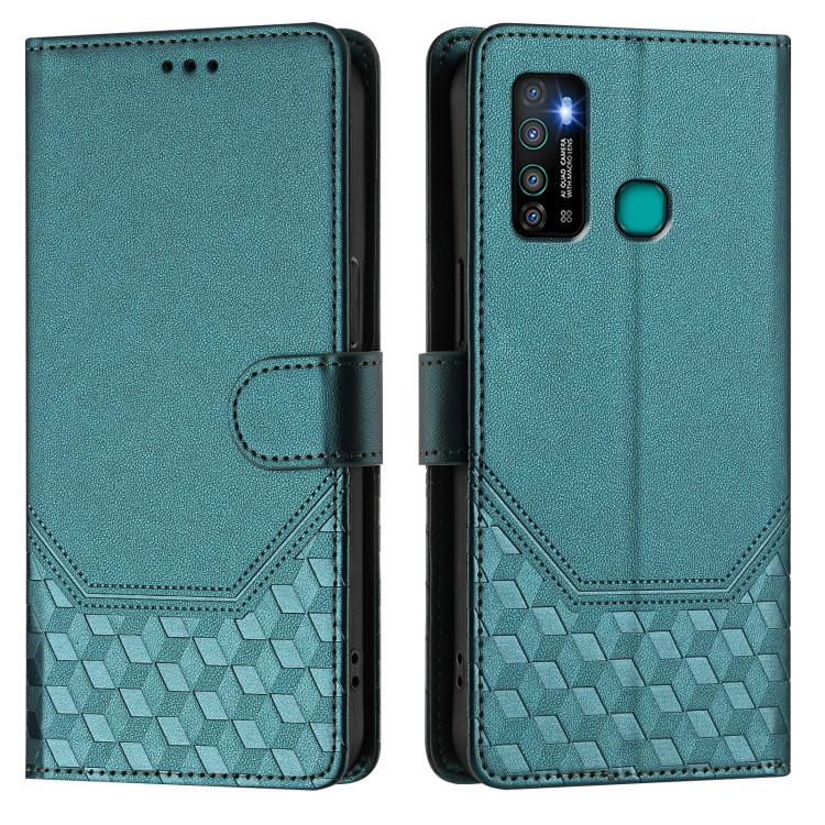 Funda de Cuero Rfid con Relieve en Panal para Tecno Camon 15/15 Air (Verde Pavo Real)