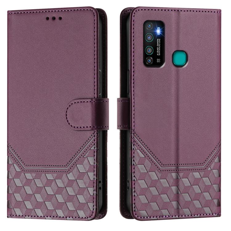 Funda de Cuero Rfid con Relieve en Panal para Tecno Camon 15/15 Air (Violeta)