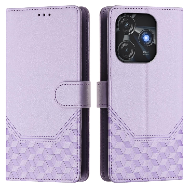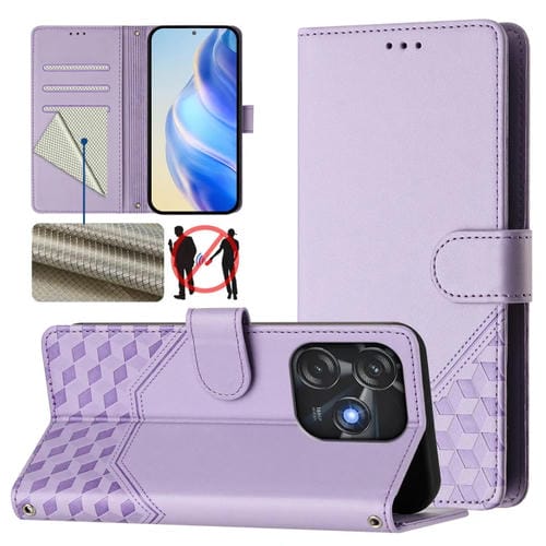 Funda de Cuero Rfid con Relieve en Panal para Tecno Spark 10C/10 4G (Morado Claro)