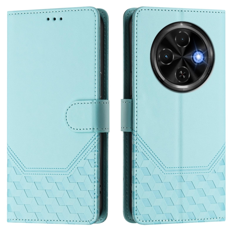 Funda de Cuero Rfid con Relieve en Panal para Tecno Spark 30C (Verde Menta)