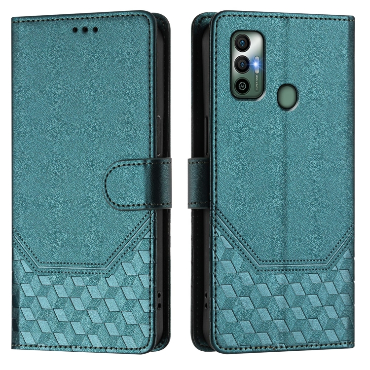 Funda Cuero Rfid con Relieve Panal para Tecno Spark 7/Spark 7T (Verde Pavo Real)