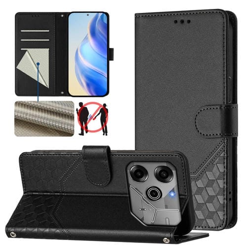Funda de Cuero Rfid con Relieve en Panal para Tecno Spark Go 2021 (Negra)