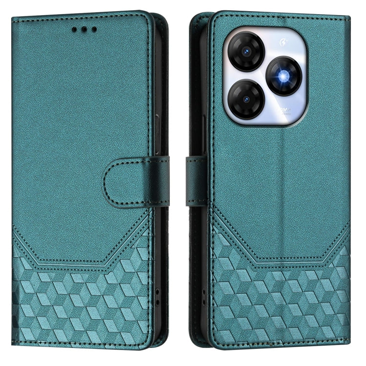 Funda de Cuero Rfid con Relieve en Panal para Itel P55 4G e Infinix Smart 8 (Verde Pavo Real)