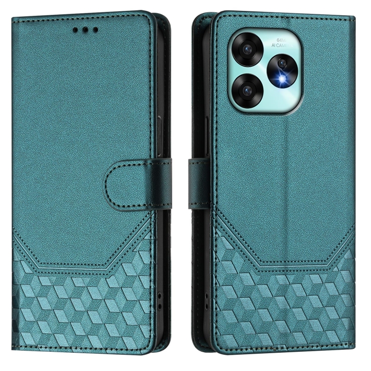 Funda de Cuero Rfid con Relieve en Panal para Umidigi A15/A15C/A15T (Verde Pavo Real)