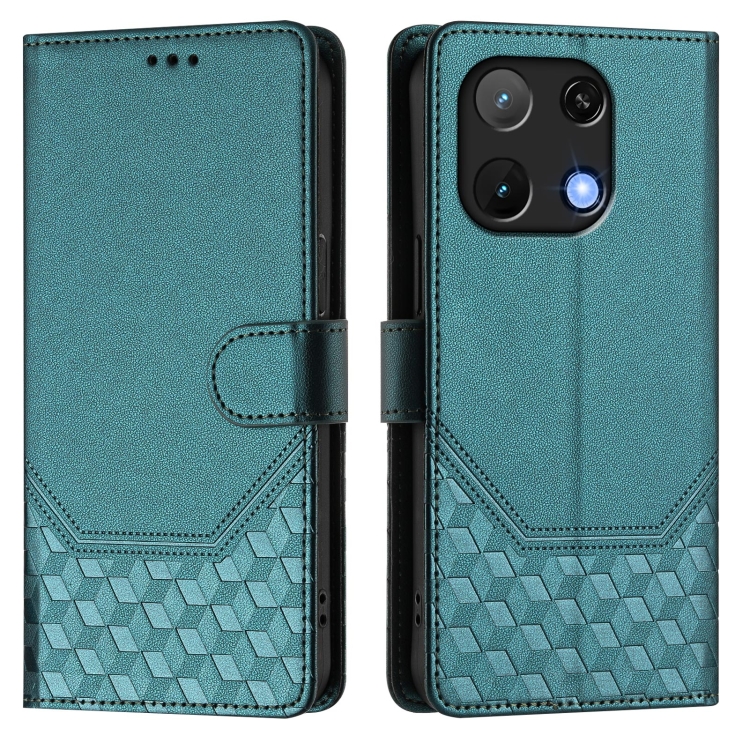 Funda de Cuero Rfid con Relieve en Panal para Umidigi Note 90 (Verde Pavo Real)