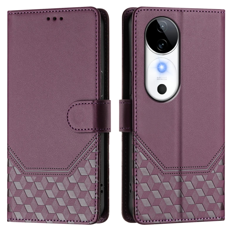 Funda de Cuero Rfid con Relieve En Panal para Vivo S19 (Violeta)