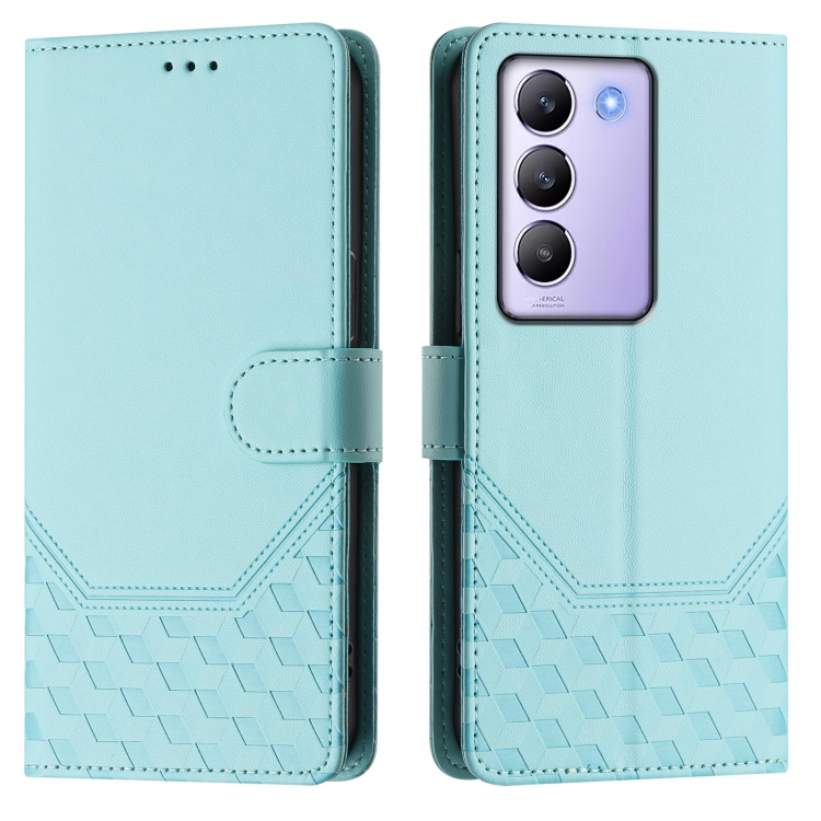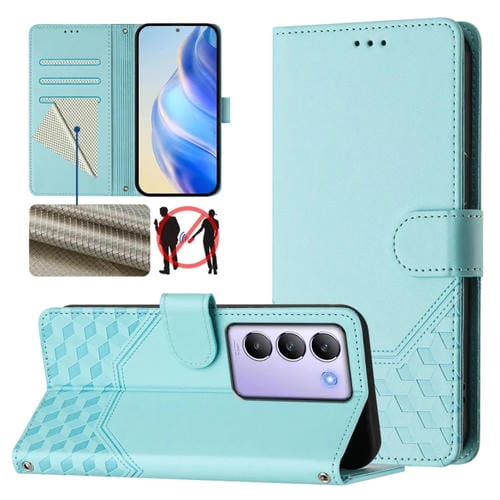 Funda de Cuero Rfid con Relieve En Panal para Vivo Y100 Idn/T3 5G Idn (Verde Menta)