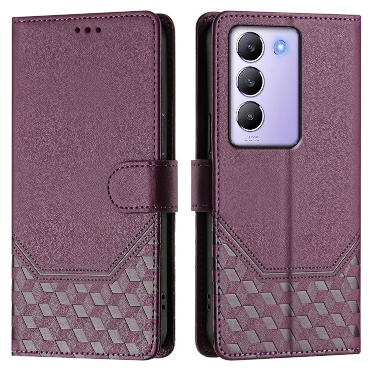Funda de Cuero Rfid con Relieve En Panal para Vivo Y100 Idn/T3 5G Idn (Violeta)