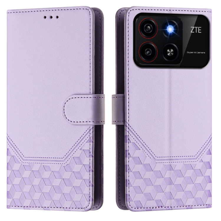 Funda de Cuero Rfid con Relieve en Panal para ZTE Blade A35/A55 (Morado Claro)