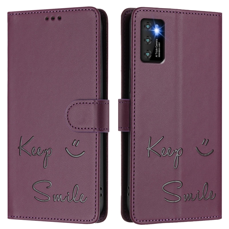 Funda de Cuero Rfid con Relieve Sonriente para Cubot P50 (Violeta)