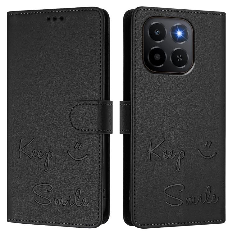 Funda de cuero RFID con relieve sonriente para Honor X6c 4G (negra)