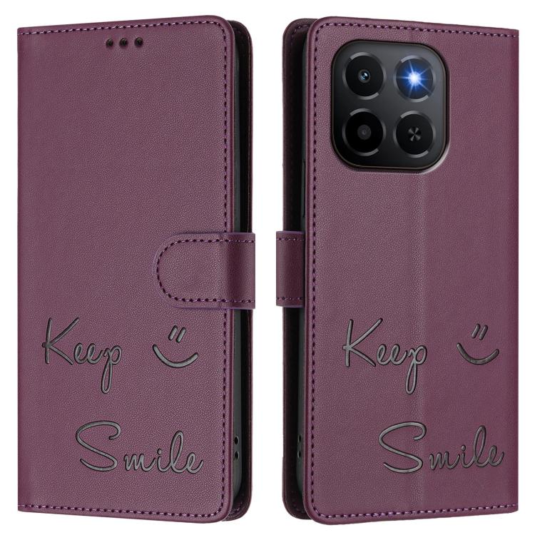 Funda de cuero RFID con relieve sonriente para Honor X6c 4G (violeta)