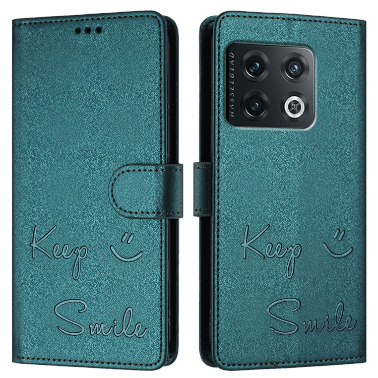 Funda de Cuero Rfid con Relieve Sonriente para OnePlus 10 Pro (Verde Pavo Real)