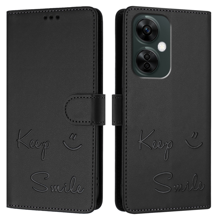 Funda de Cuero Rfid con Relieve Sonriente para OnePlus Nord Ce 3 Lite/Nord N30 (Negra)