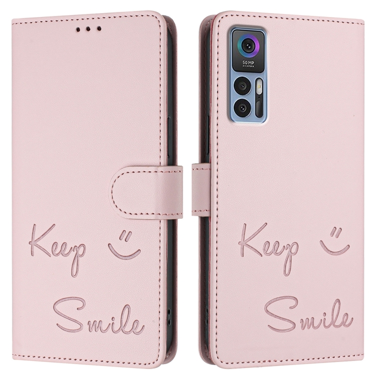 Funda de Cuero Rfid con Relieve Sonriente para TCL 30 4G/30 5G/30 Plus (Rosa)