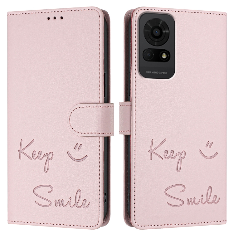 Funda de Cuero Rfid con Relieve Sonriente para TCL 50 Le 5G (Rosa)