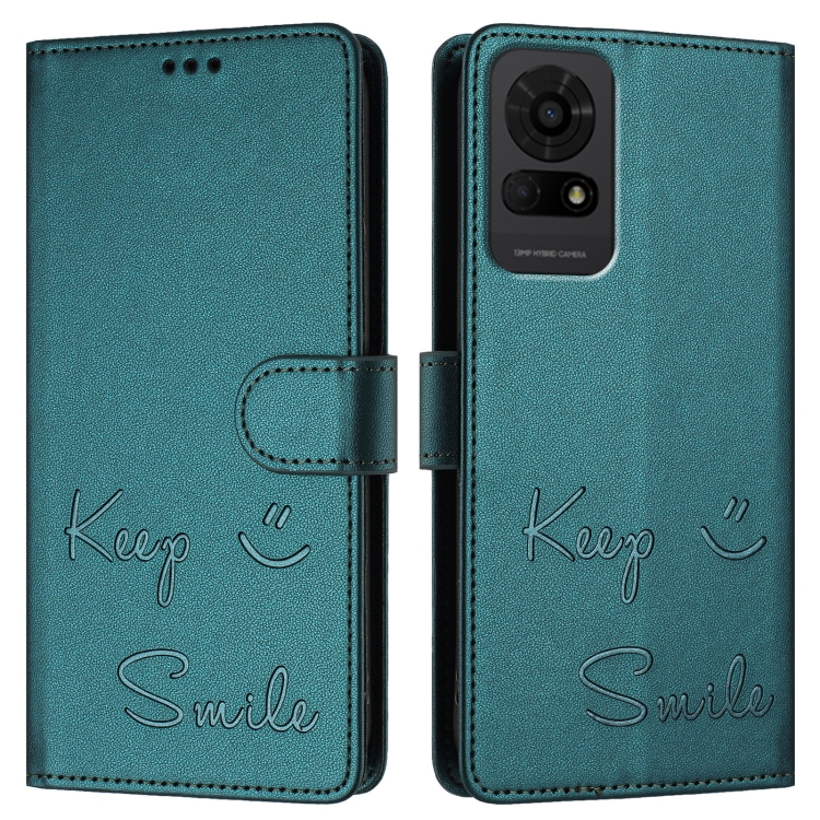Funda de Cuero Rfid con Relieve Sonriente para TCL 50 Le 5G (Verde Pavo Real)