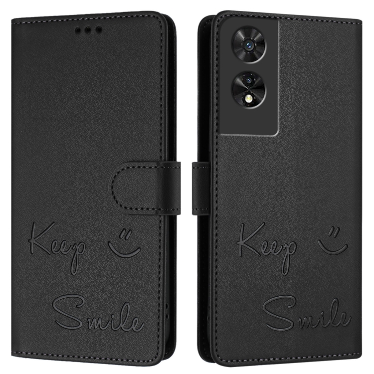 Funda de Cuero Rfid con Relieve Sonriente para TCL 505 (Negra)