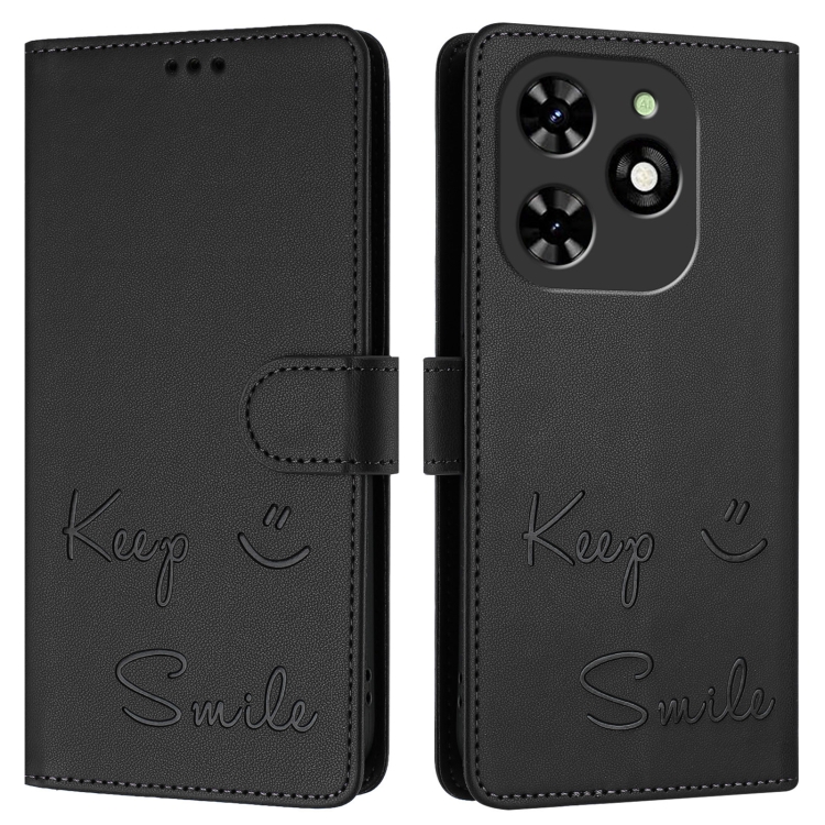 Funda de Cuero Rfid con Relieve Sonriente para Tecno Spark Go 2024 y Spark 20C (Negra)