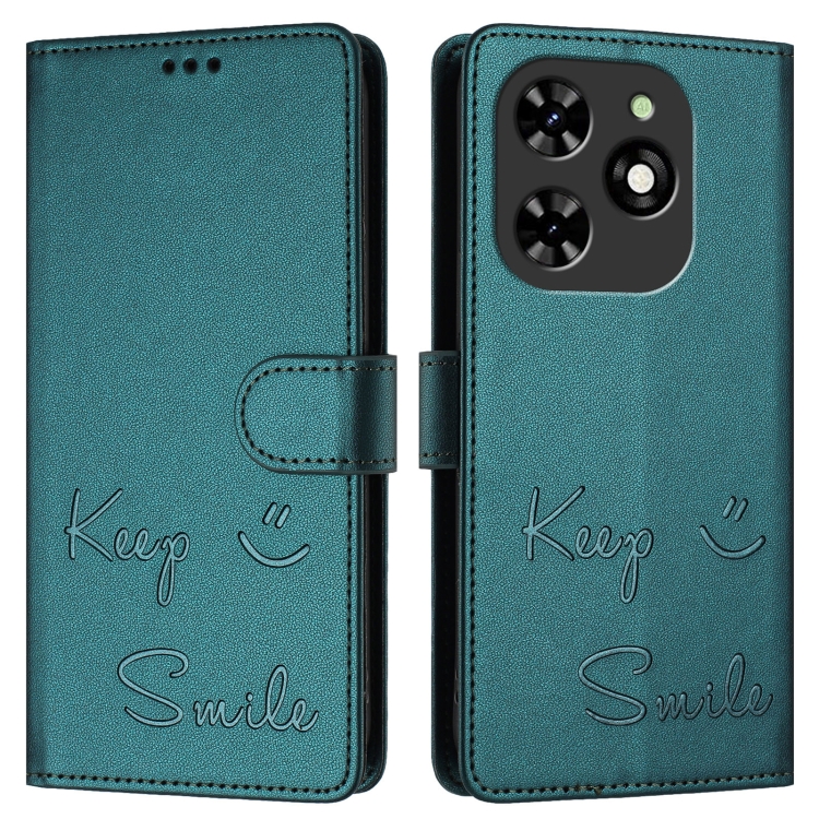 Funda de Cuero Rfid con Relieve Sonriente para Tecno Spark Go 2024/Spark 20C (Verde Pavo Real)