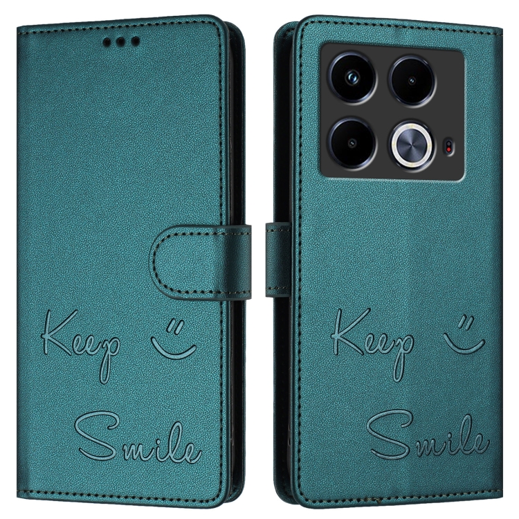Funda de Cuero Rfid con Relieve Sonriente para Teléfono Infinix Note 40 4G (Verde Pavo Real)