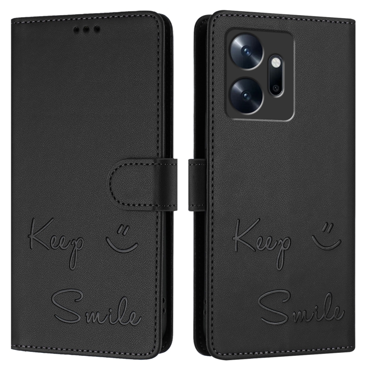 Funda de Cuero Rfid para Teléfono Infinix Zero 20 con Relieve Sonriente (Negra)