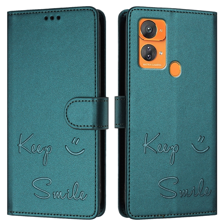 Funda de Cuero Rfid con Relieve Sonriente para Oukitel C33 (Verde Pavo Real)